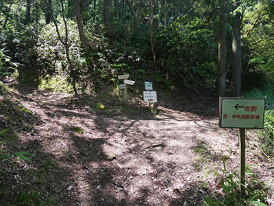 三の丸下の分岐まで来た。本丸まで0.6km。ここまで36分