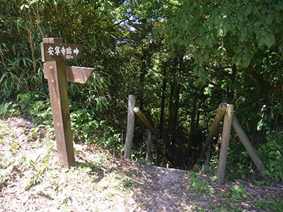 安寧寺跡には2ルートあるが、三の丸中程の階段を下りる。