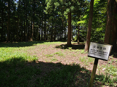 安寧寺跡。石碑などが並ぶ。最終の曲輪でここまで92分