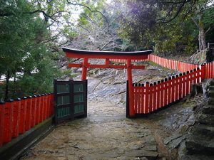 上り詰めると朱色の玉垣に囲まれ鳥居が立っている。