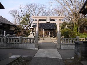 住宅地の間の一の鳥居を進むと、玉垣に囲まれ、二の鳥居を入口とする境内。社殿は南向き