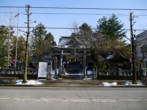 本殿・拝殿は東照宮の建物を移築したもので、彫刻も凝っている。冬の間は風雪から守るため朱色の雪囲いがされる。