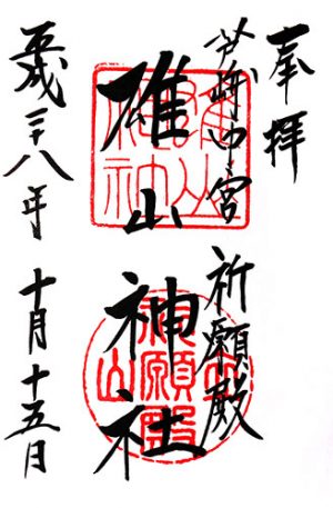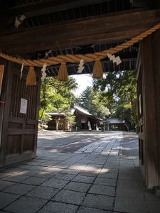 御朱印をいただく間拝殿の中の絵馬を見る。かなり剥落しているが、神話の素戔嗚尊の八俣大蛇退治の一場面のようだ。