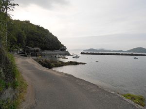 海岸沿いを西へ。途中海の中に鳥居が建っているのが見える。