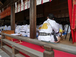 拝殿に入り、三馬場の神社宮司らも参列する中、祝詞奏上など神事が執り行われ、