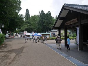 入口の駐車場には白山に関係する自治体や飲食のテントが並んでいた。